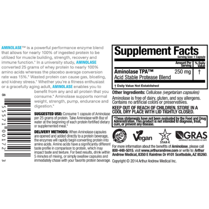 Aminolase TPA by Arthur Andrew Medical is a powerful enzyme blend that maximizes the benefits of ingested protein, allowing it to be utilized for muscle building, recovery, and immune function.