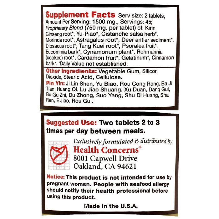 The key ingredient in this powerful yet safe formula is kirin ginseng, combined with other all-natural herbal ingredients including deer antler sediment, cistanche salsa, cynamorium, cinnamon bark, gelatinum and rehmannia.
