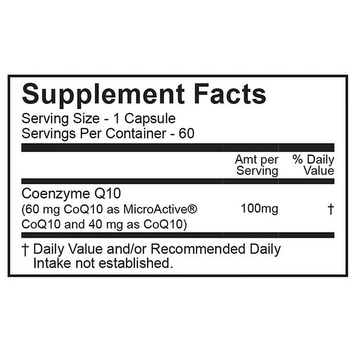 Coenzyme Q10 (60 mg CoQ10 as MicroActive CoQ10 and 40 mg as CoQ10) 100 mg
