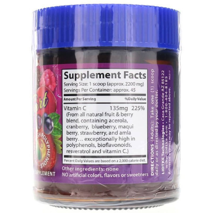 Berry-C Tart by Lidtke is natural blend of dried fresh fruits and berries, which contain the complete natural form of Vitamin C, and is rich in Polyphenols, Bioflavonoids, Resveratrol, Ellagic Acid, and other extremely beneficial nutrients.