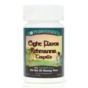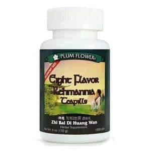 Eight Flavor Rehmannia by Plum Flower, also known as Zhi Bai Di Huang Wan, is a longstanding Chinese herbal formula used to relieve heat symptoms associated with a depletion of yin and yin deficiency.