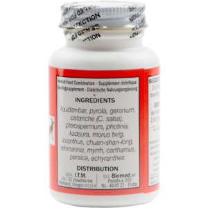 Liquidambar 15 is comprised of blood vitalizing herbs (liquidambar, myrrh, carthamus, persica, achyranthes). It also includes the yang tonic cistanche and the yin nourishing loranthus and rehmannia.