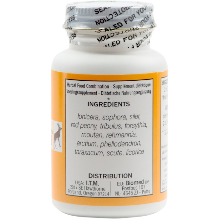 Lonicera 13 Ingredients: Lonicera Flower, Sophora Flacenscens, Siler, Peony (Red), Tribulus, Forsythia, Moutan, Rehmannia (Fresh), Phellodendron Bark, Dandelion, Scutellaria, Licorice.