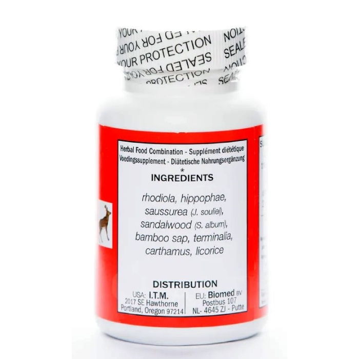 Rhodiola 8 Ingredients: Rhodiola, Hippophae Fruit, Vladimiria (Cultivated), Santalum, Bamboo Silicea, Chebule, Carthamus and Licorice.