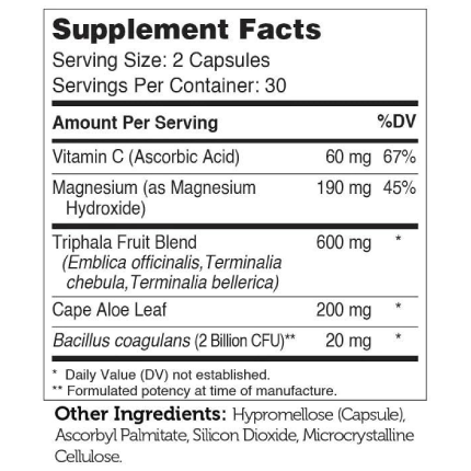 ConstipAid by Zahler contains a powerful blend of herbs, specialized probiotics, and digestion-regulating compounds to help relieve occasional constipation and to help move the ‘process of elimination’ along naturally and regularly.